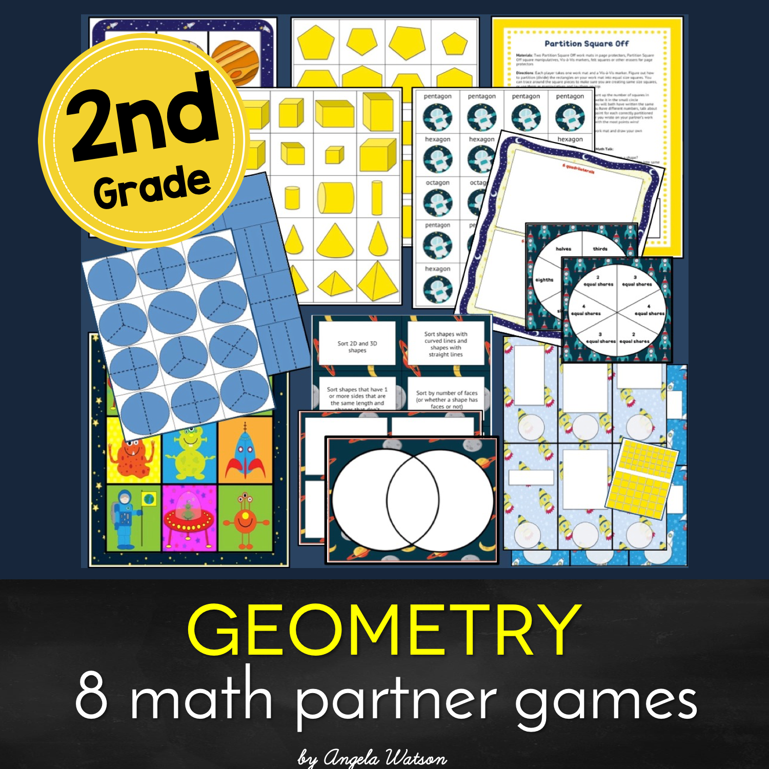 These 8 games have everything you need for teaching CCSS-aligned second-grade geometry for only $1 each! There are games for each geometry Common Core standard (2.G.A.1, 2.G.A.2, 2.G.A.3) covering key concepts such as: