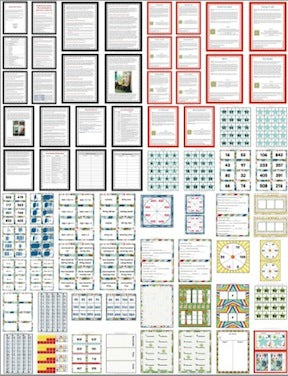 * 38 pages of sports-and-stars-themed game boards, cards, and other colorful and fun materials for gameplay. Most of the materials are open-ended and can be used in lots of different ways so you have fewer items to print and create. The only additional items you need to provide are page protector sheets and Vis-à-Vis or dry-erase markers, dice, paperclips to make spinners, and base ten block manipulatives.