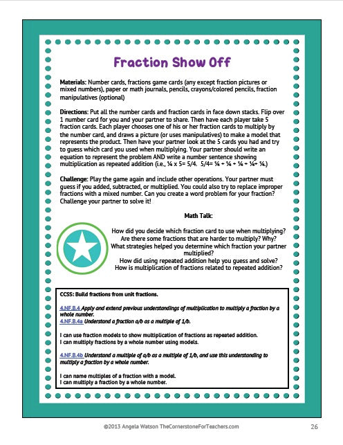 Can't wait to use these games once we get to Fractions. I bought your geometry pack already and am looking into your other 4th-grade packs. These will be great for my math workshop as well as just spiraling partner activities. Thanks so much! - Rachel D.