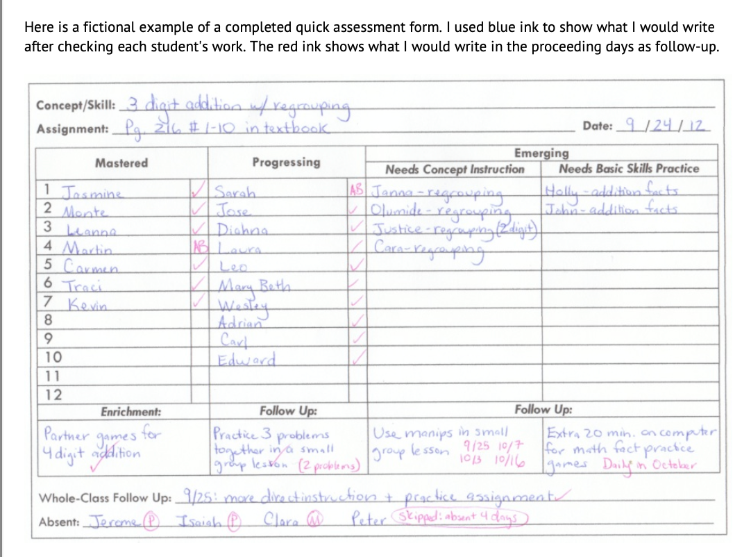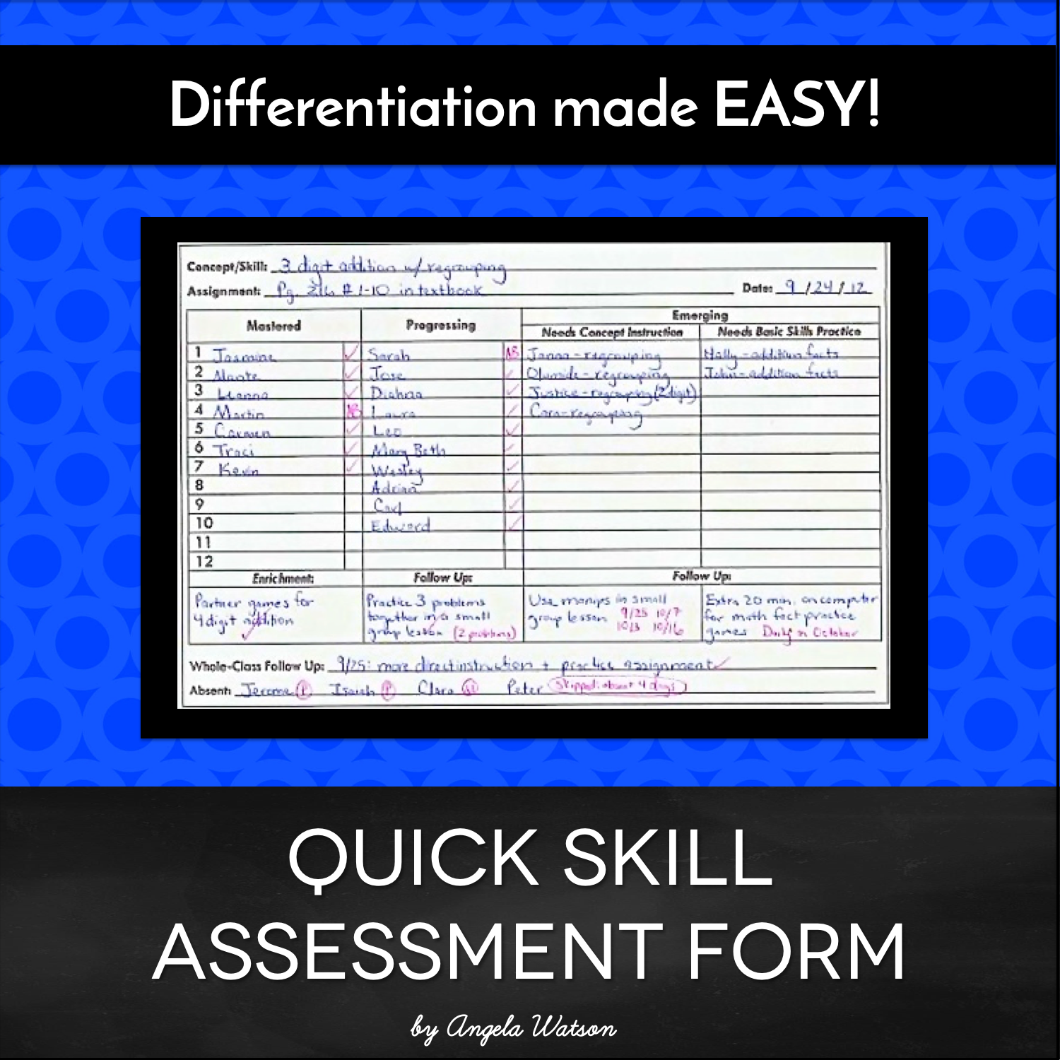 Quick Skill Assessment Form: A simple system for differentiation & documentation